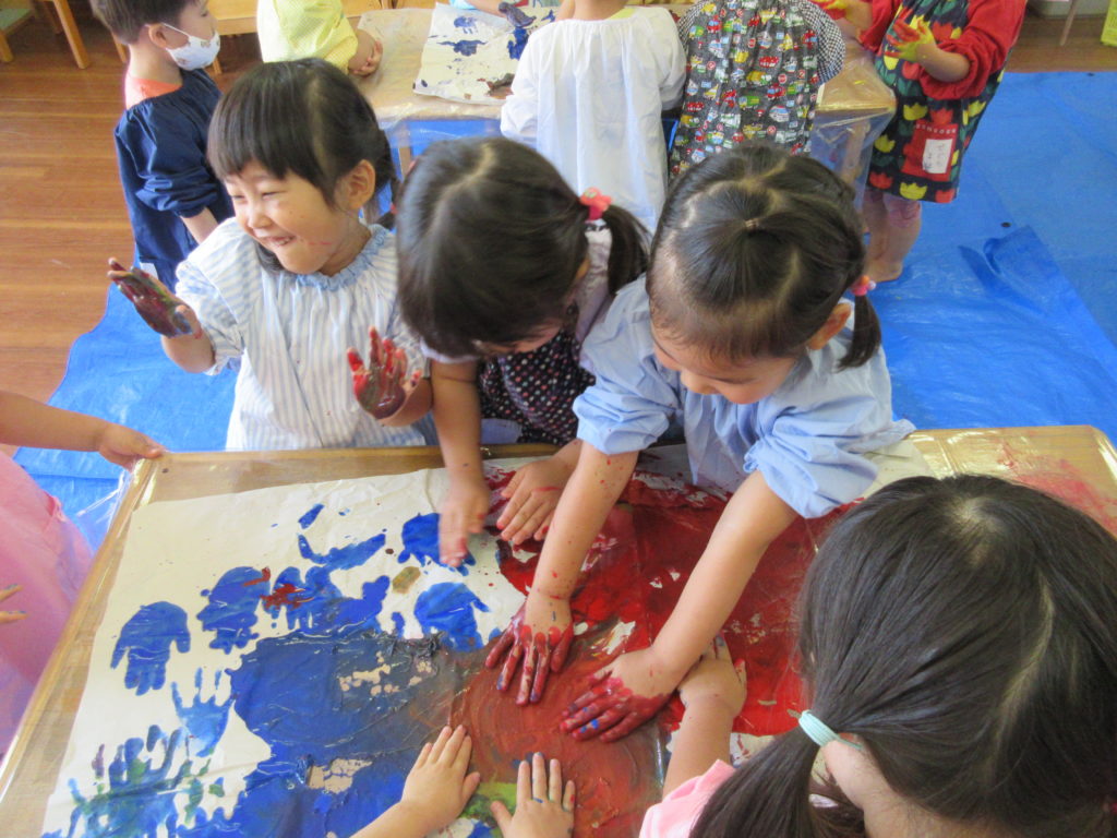 色が混ざると違う色ができることに気づくと、「これとこれは何色ができるのかな~」といろ