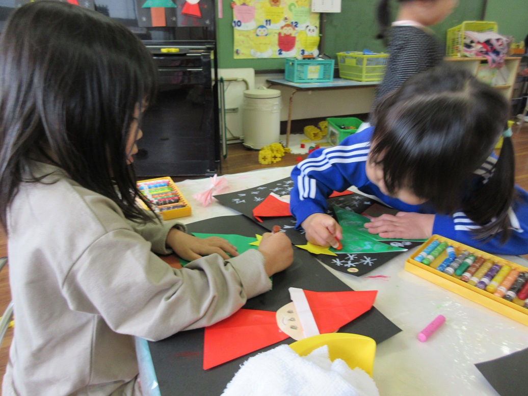 最後にサンタさんとクリスマスツリーの飾りつけをしていきます!