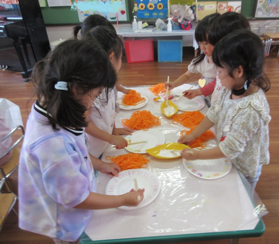 スプーンとフォークをはさみ✂で切って、テープをわっかにしてぺたっ![]()