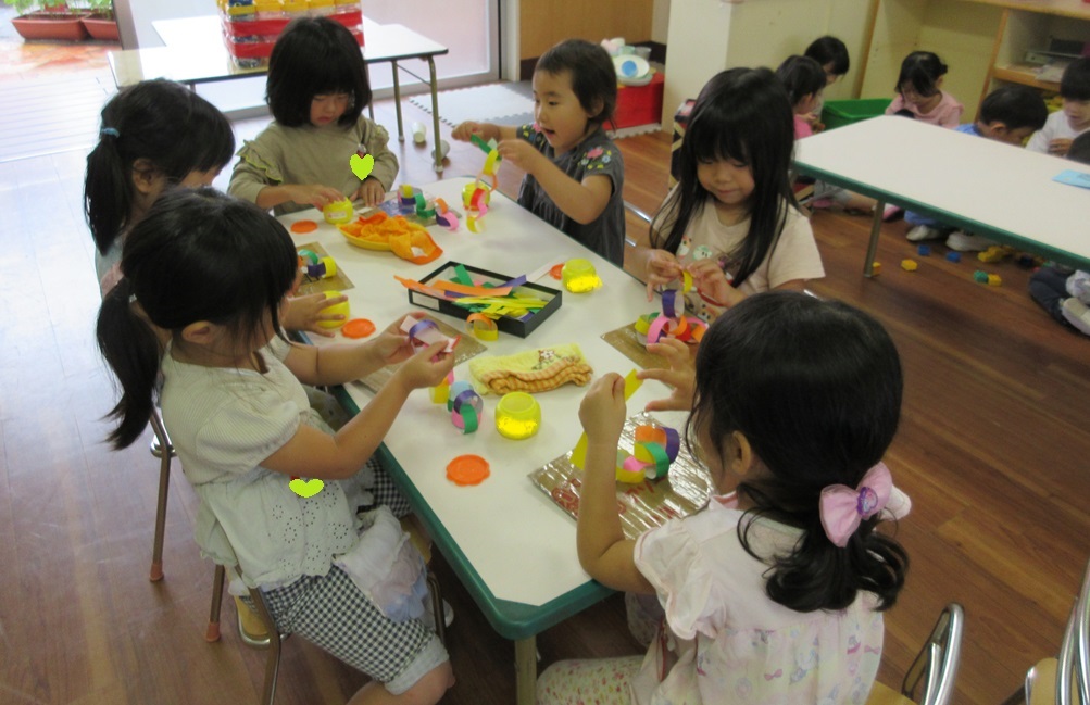 写真が少しですが、七夕飾りの輪つなぎの様子をお届けします![]()