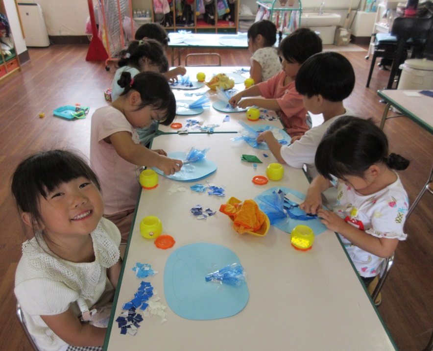 モザイクアートのように貼っている子も✨貼りながら、『たのしい~』という声が![]()