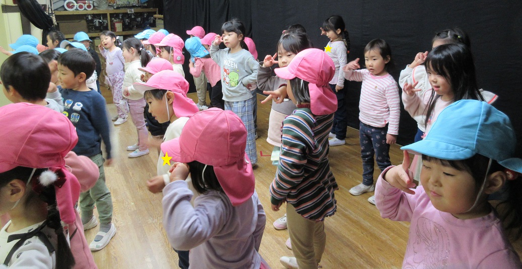 発表会の翌日、年少さんと一緒に発表会ごっこをしました٩( ”ω” )و