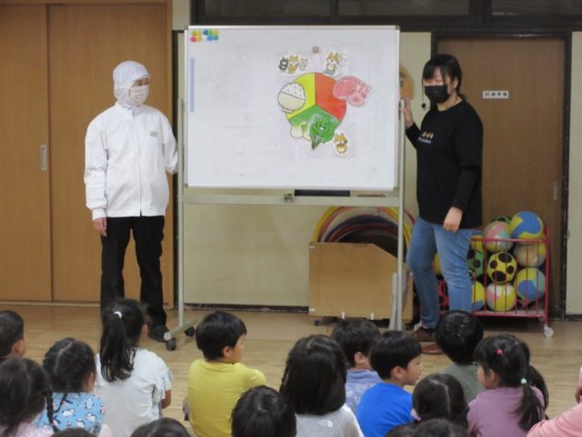 5月12日(月)に、給食室の先生より食育指導をしていただきました