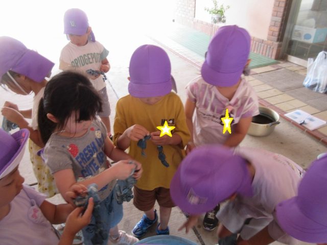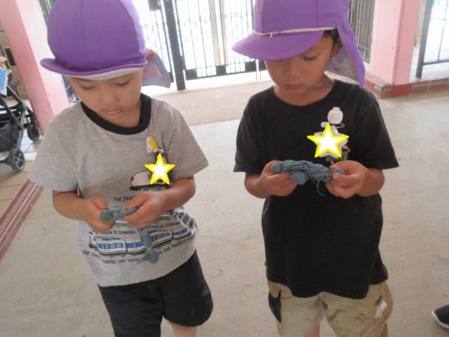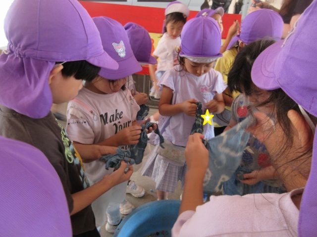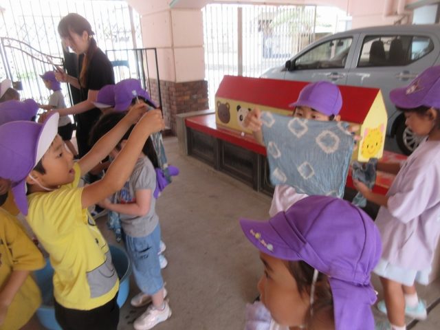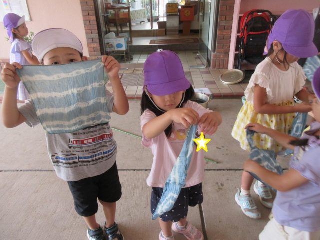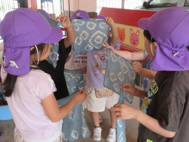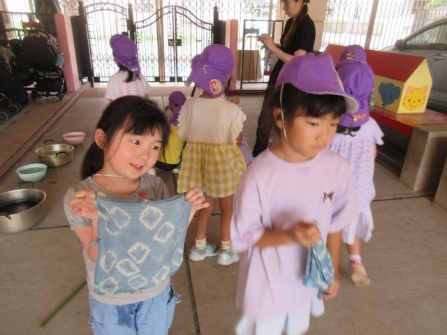 昨年は巾着やシャツに染めている子がいました