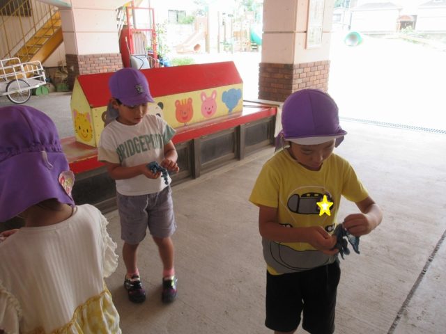 輪ゴムをはずすのにみんな苦戦