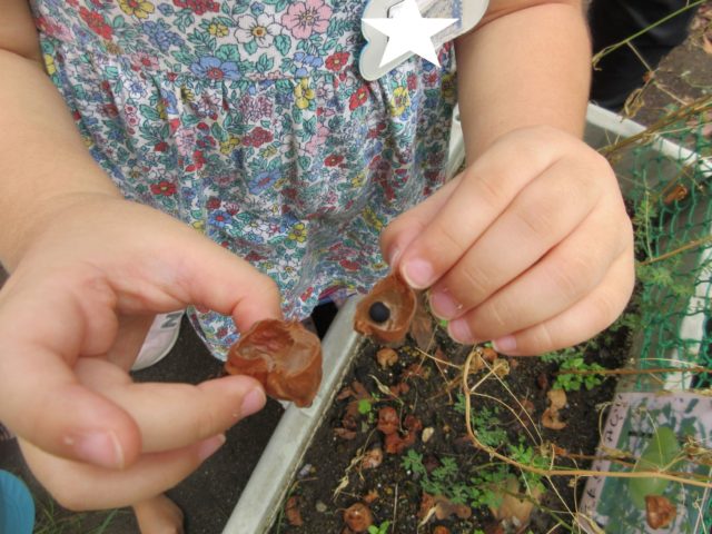 みんな丁寧に風船を破いて、そーーーっと種を取り出します。