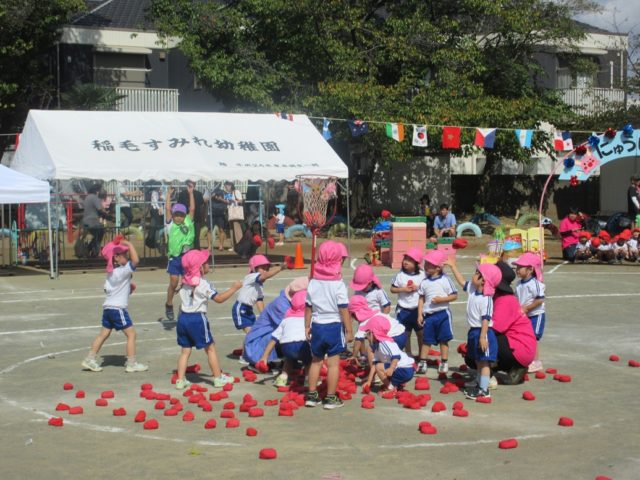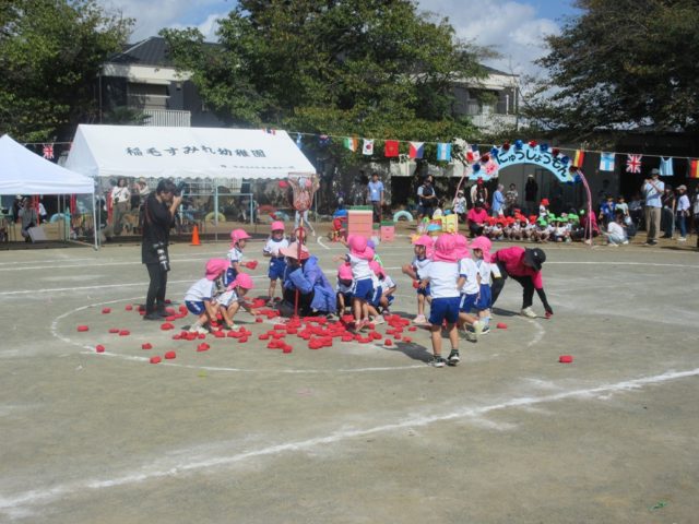 僅差でりす組が2勝最後のお片付け競争では、うさぎ組が勝ちました