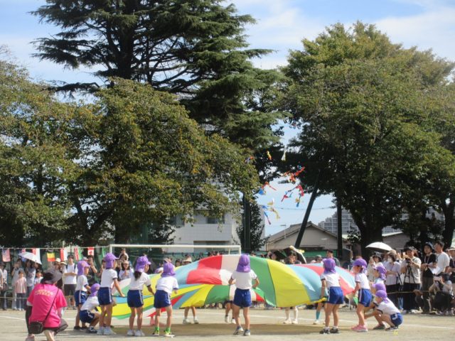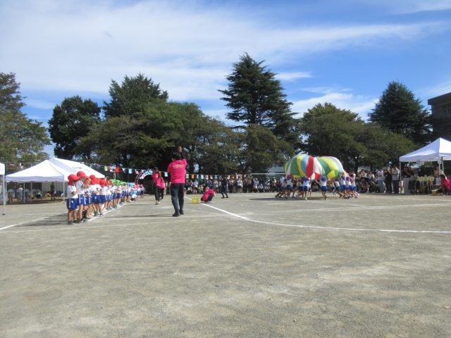 年長組のパラバルーン、年中・年少組のダンスで開会式を盛り上げてくれました