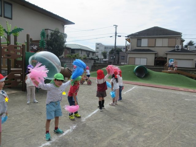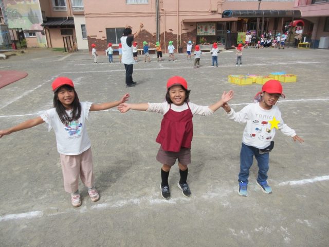 子どもたちから「もう一回踊りたい!」と声が挙がり、園庭に出てみんなでダンスをしました