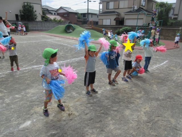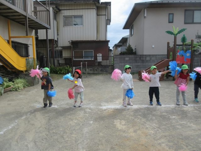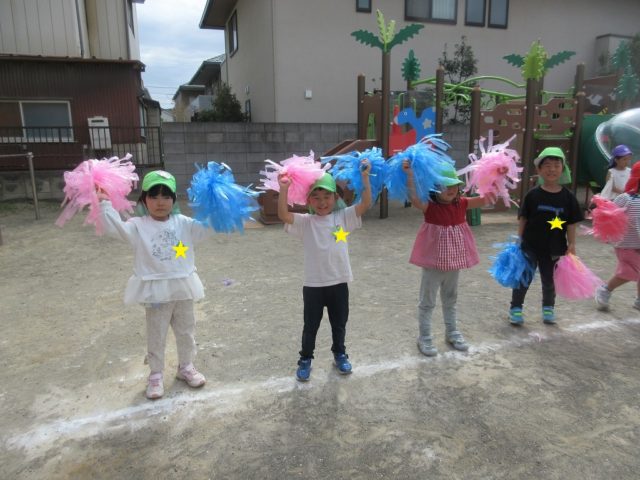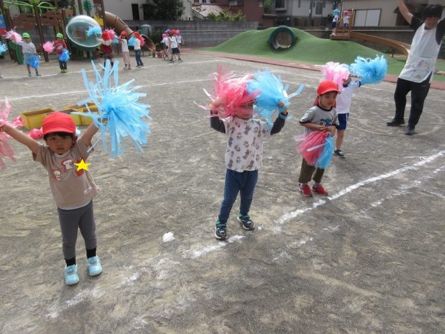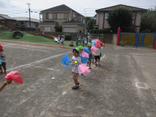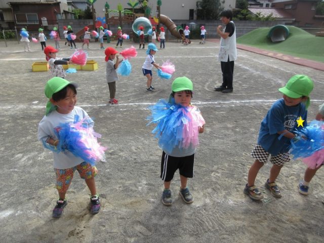 一緒にポンポンを持って真似っこしながら踊っていました