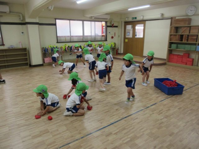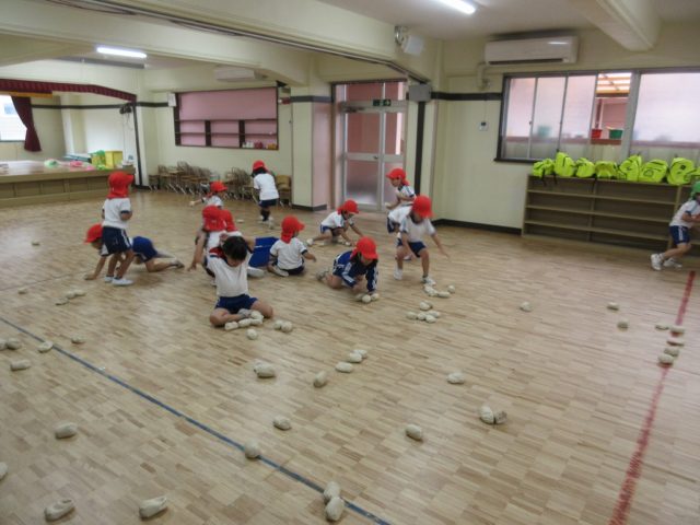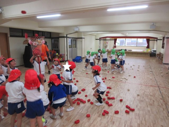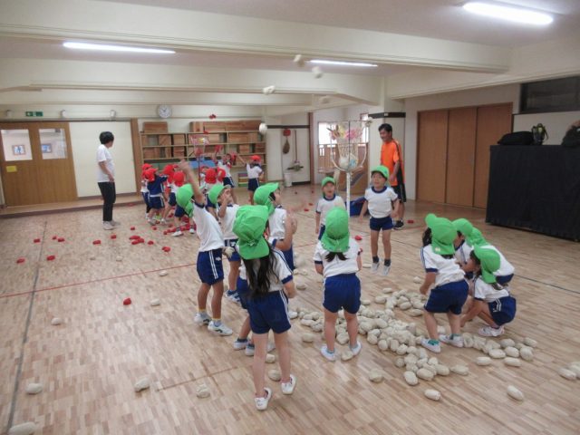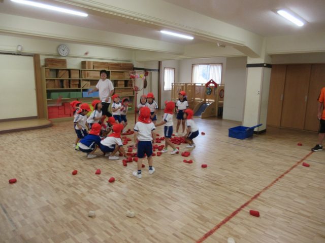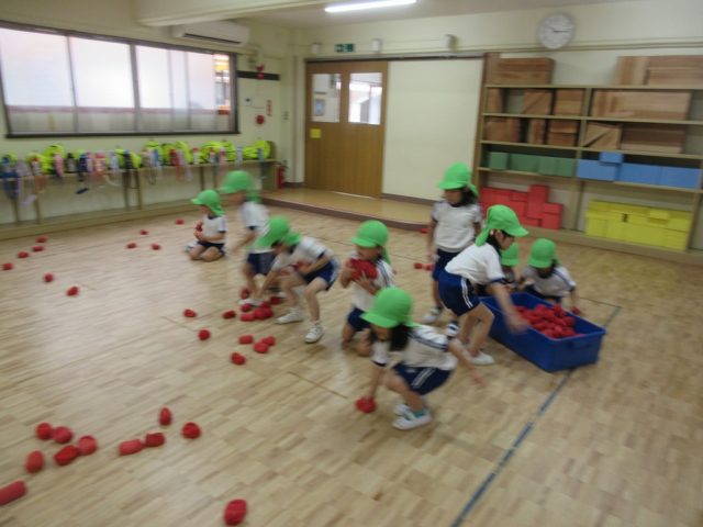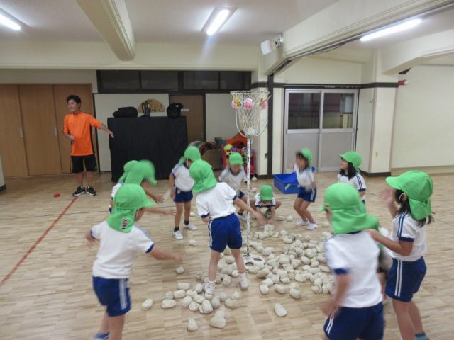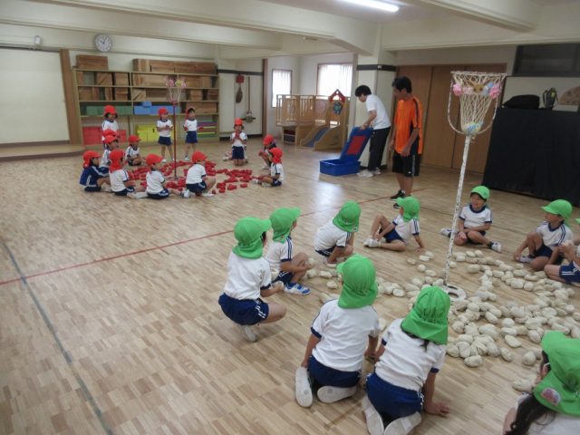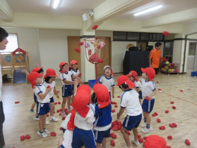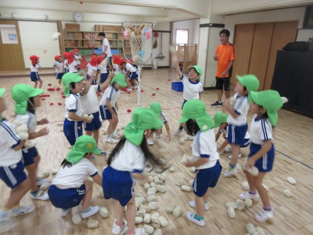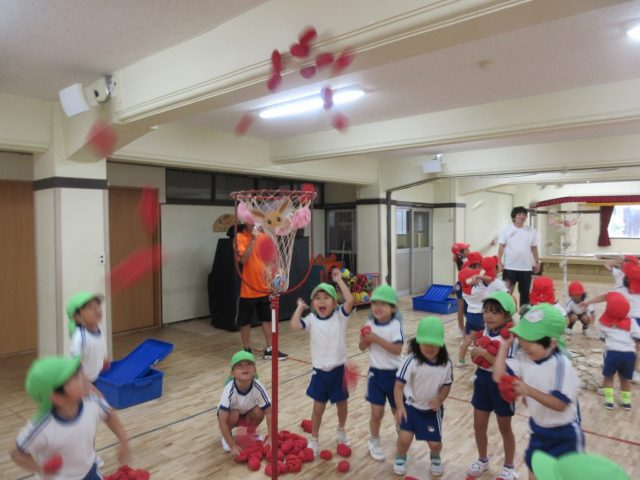 年少さんの頃と比べて、カゴを狙って投げるのがとっても上手になった子どもたち。