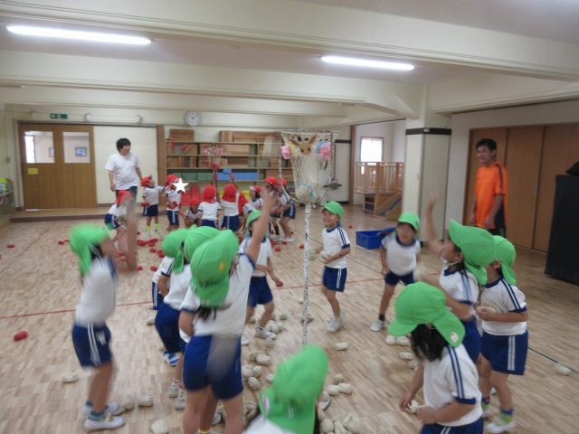 最初の競技は玉入れです
