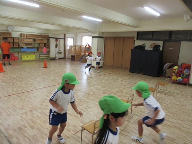 体操の時間にもいろいろな競技で運動会ごっこを行ないました