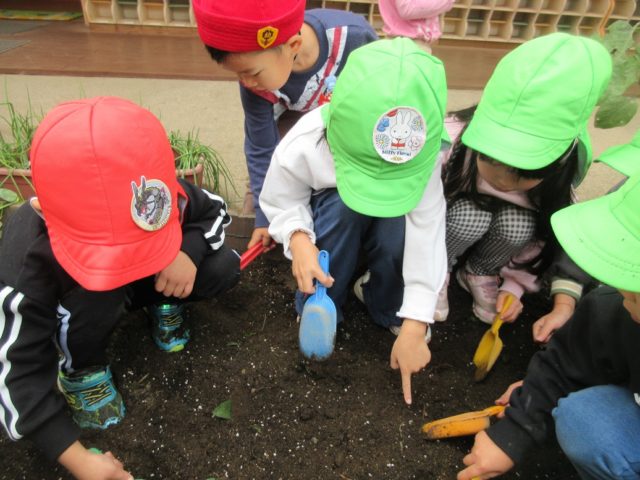 さあ、次は何を育てようと話しているところ、子どもたちの希望で葉っぱの野菜がいいということに!!