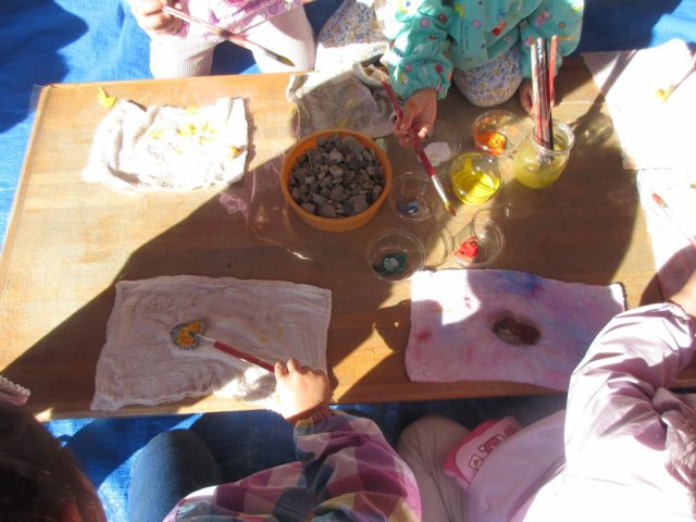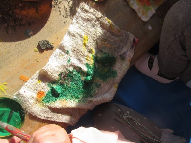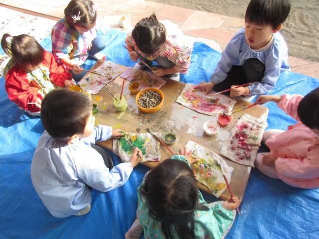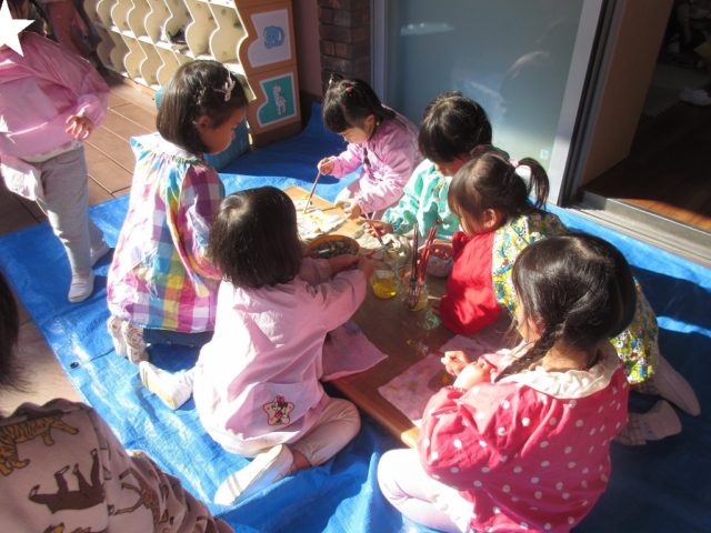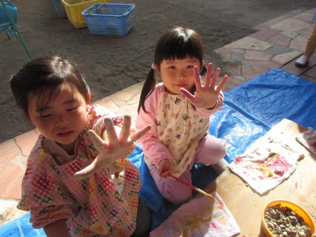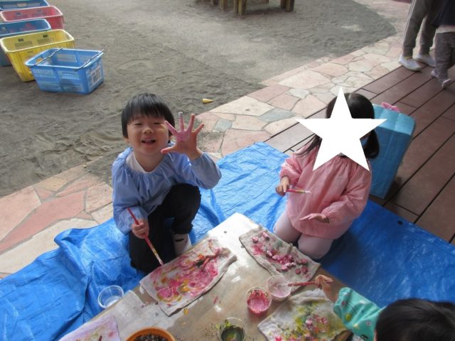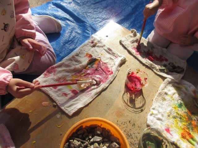 (園庭の小石)をたくさん集めたので、きれいに色塗りしました![]()