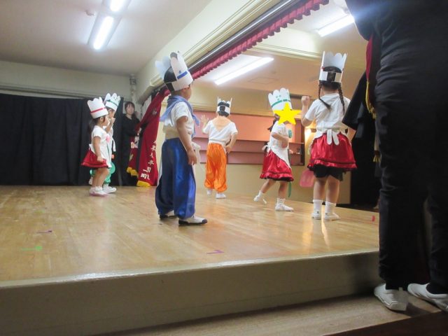 この日に初めて衣装を着て踊りました。衣装を着ると嬉しそうに友達と見せ合いっこしていました![]()