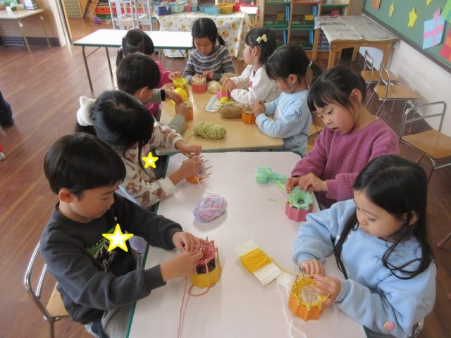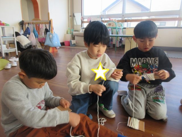 毛糸をだした流れで、リリアンのマフラー作りが盛り上がっています![]()