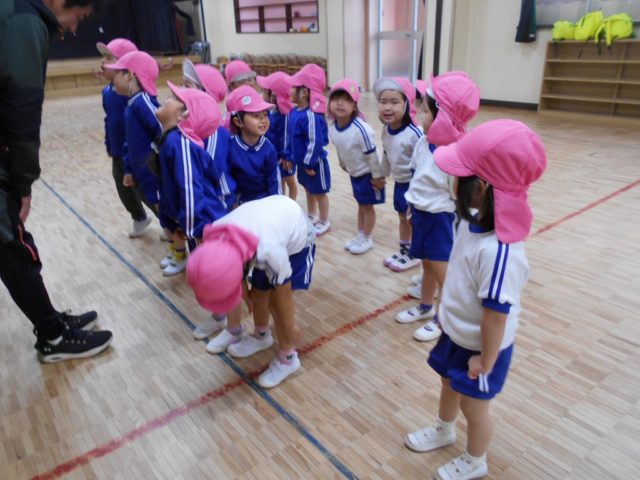 担任と岡山先生にしっぽを取られないように元気よく走りました(しっぽ取りに夢中になり、ゲーム中の写真を撮り忘れました