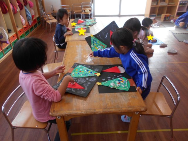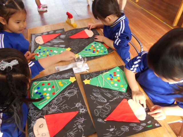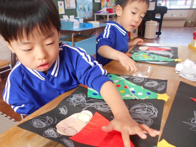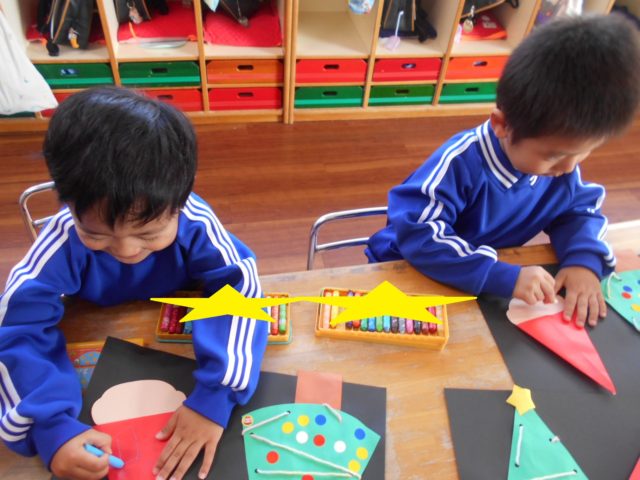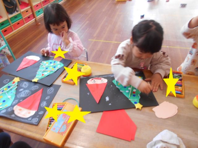 黒い画用紙に白いクレヨンが描けることに驚き、楽しみながら描いていました✨