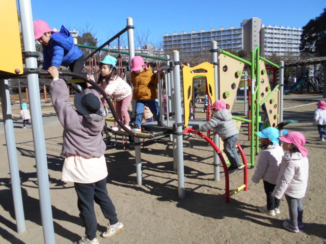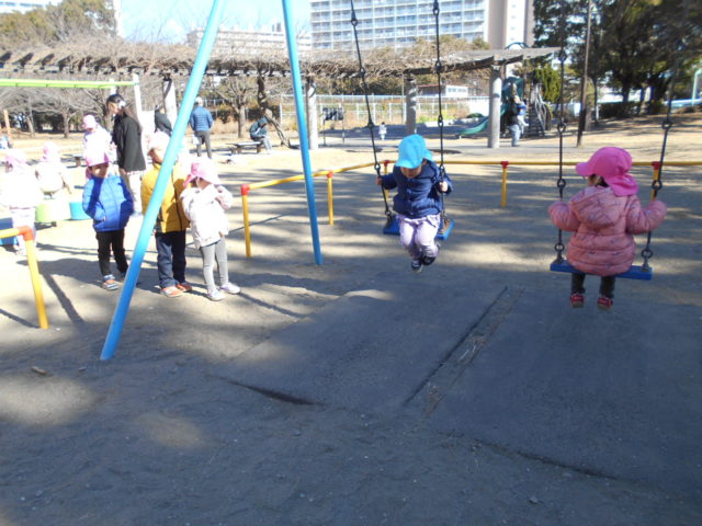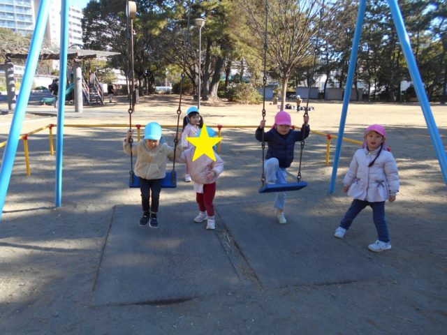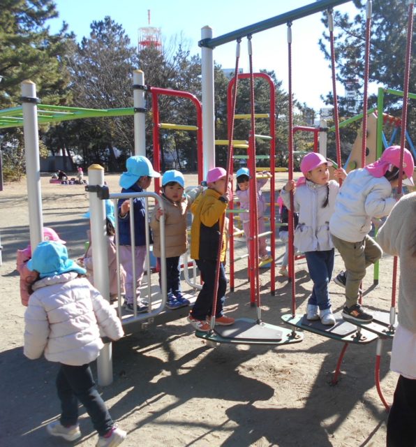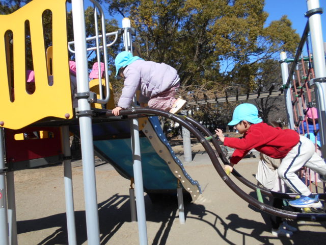 凧をとばした後は公園にある遊具で遊びました!