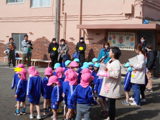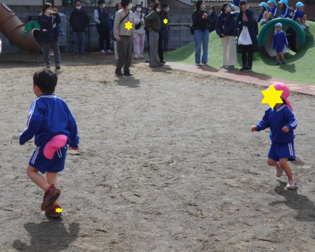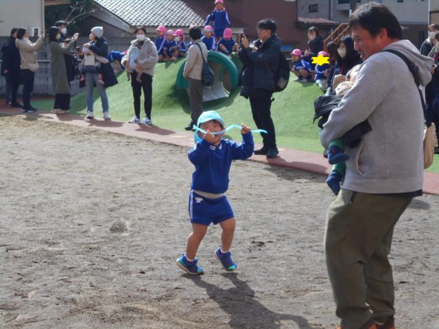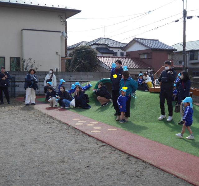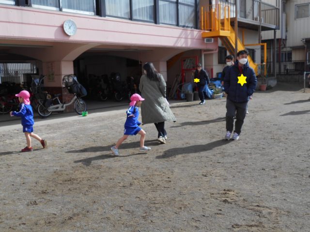 参観日はとても寒かったですが戸外で子どもたちは元気いっぱい遊んだり、しっぽとりゲームをしたりしました![]()