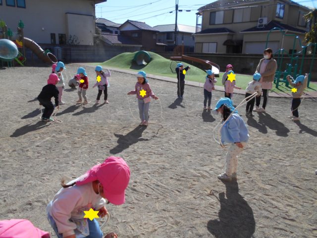 10回跳べた喜びを味わい、「先生!10回跳べたよ!!」と嬉しそうに伝えにきてくれます![]()