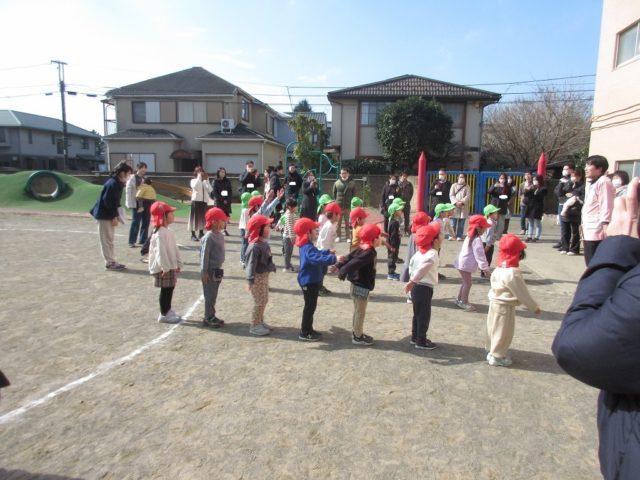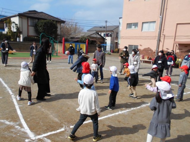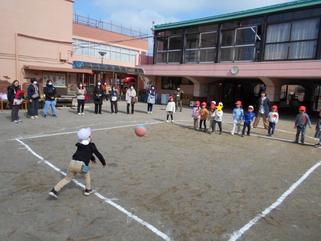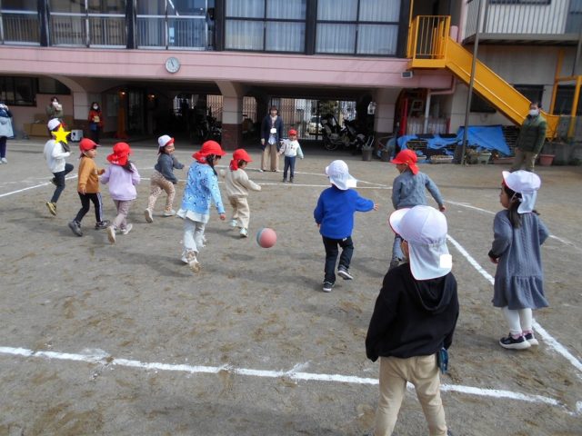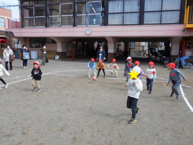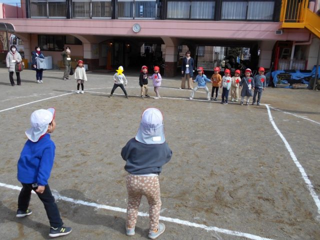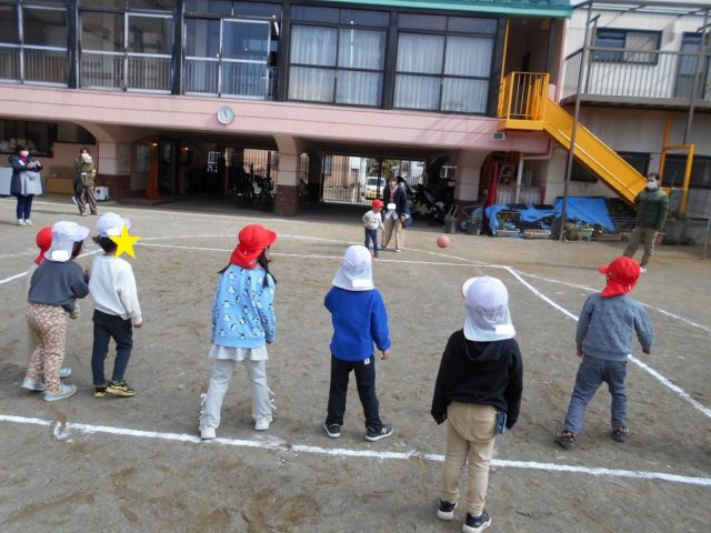 中当ては体操の時間に何度も行ない、「当たったら外に出る」「線をまたがない」といったルールをしっかりと覚えて守ることができるようになりました![]()