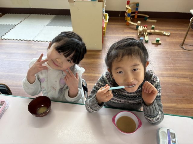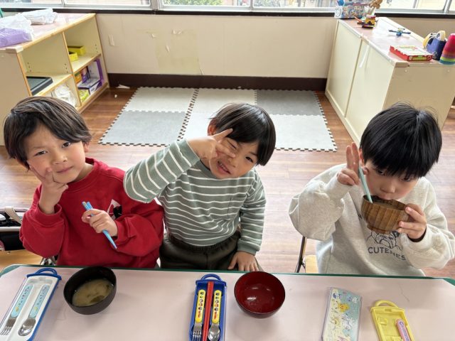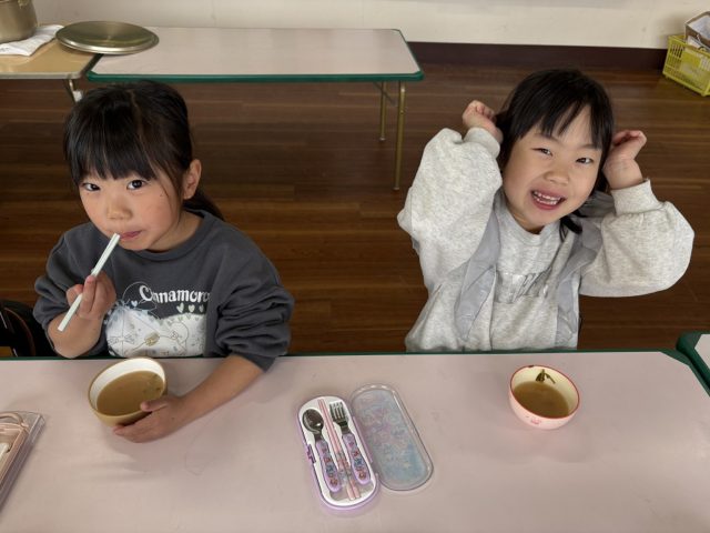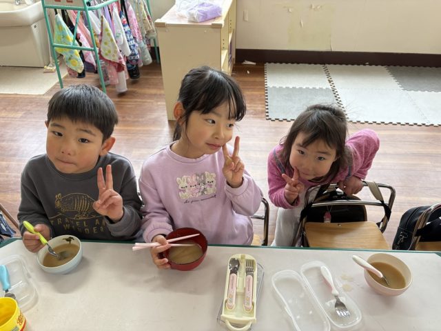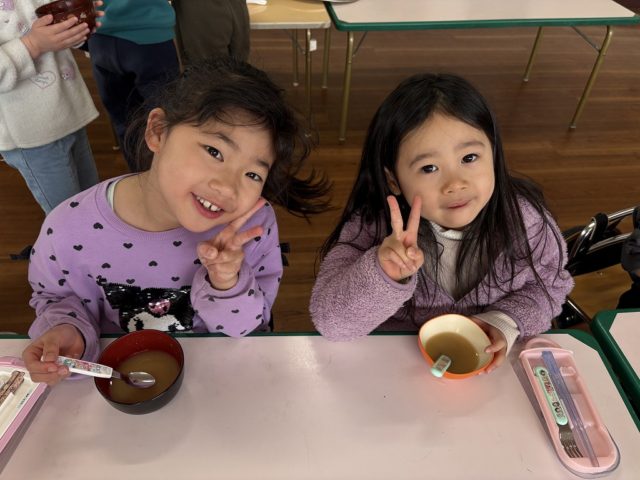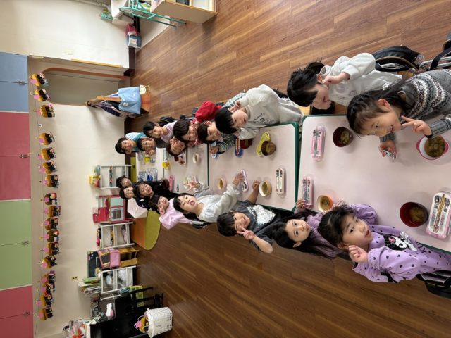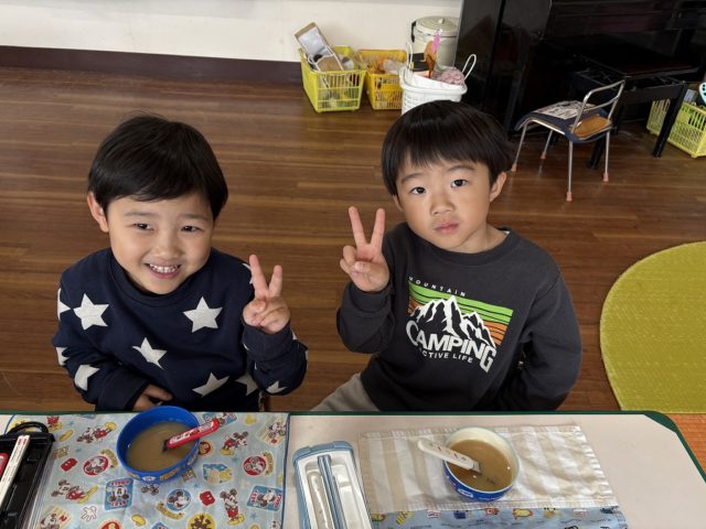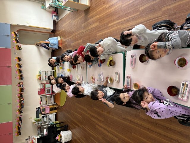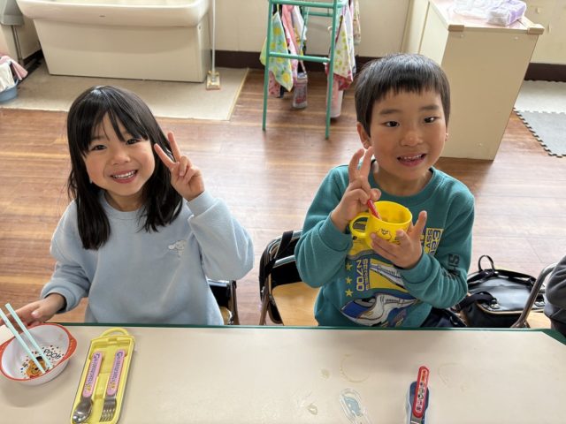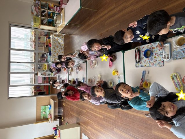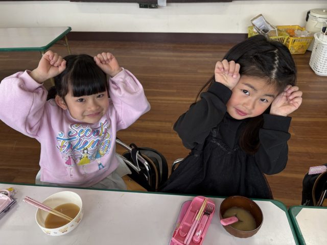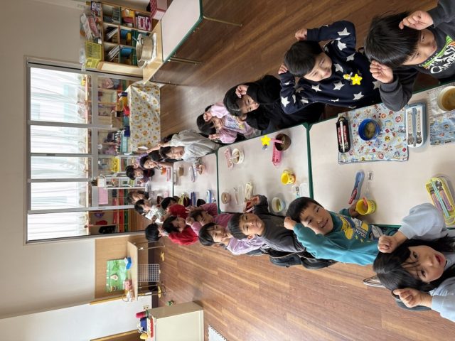 手をミッキーの耳のようにやっている子は『いただきマウス』ポーズです![]()