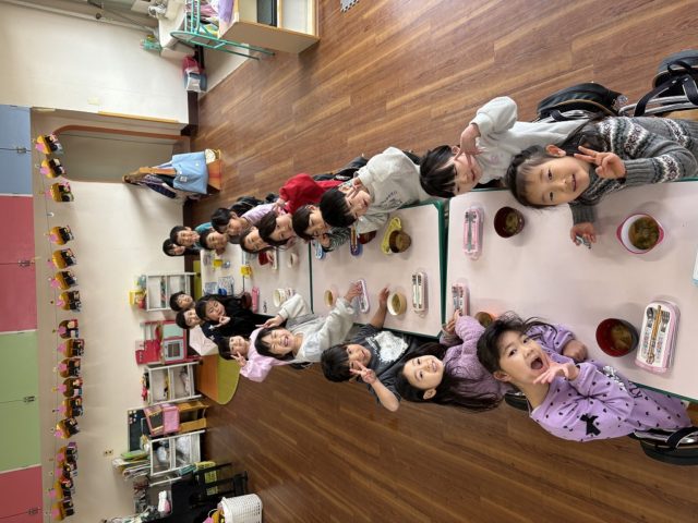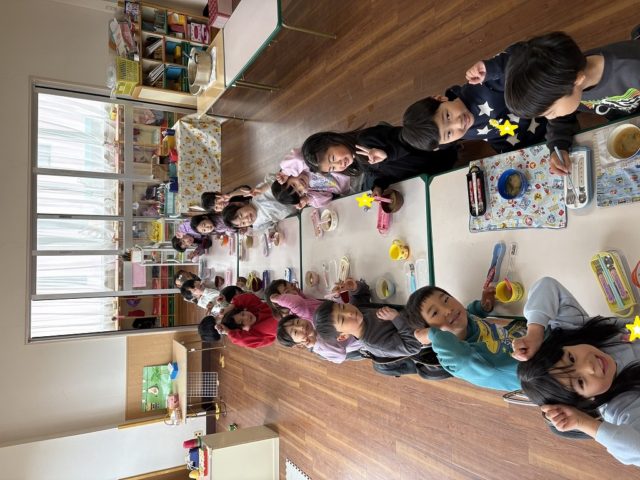 みんなで机を並べて食べました