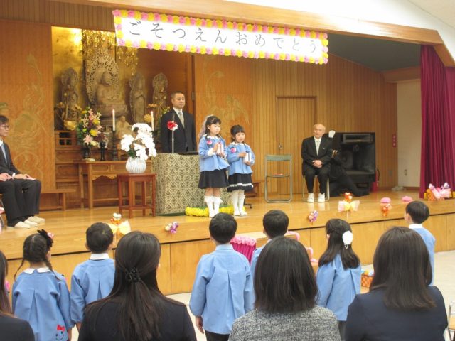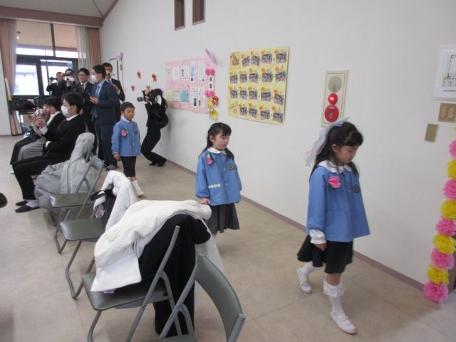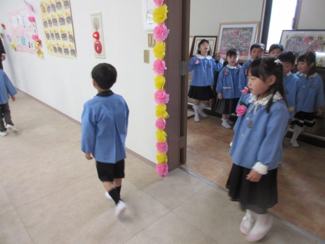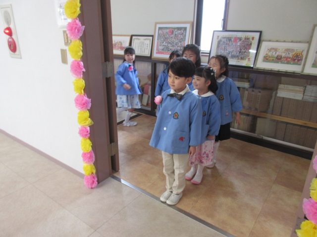 年長 卒園・・・③ 2026-03-10 オフ 投稿者: inagesumire 続いて、当日の様子 登園してきて少し緊張気味の子どもたち・・・ 胸に花のコサージュをつけてもらいスタンバイ🌸 そして式中・・・ ④につづく・・・