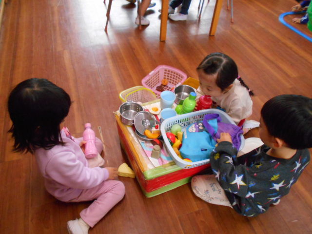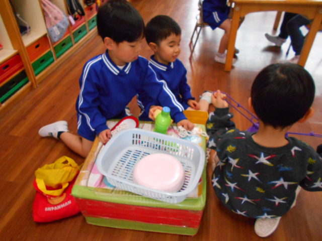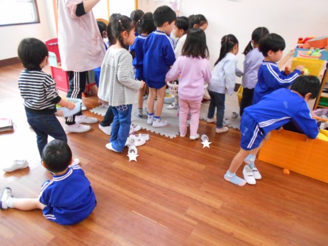 年少 みんなともだち♪② 2026-03-10 オフ 投稿者: inagesumire この日はりすぐみでみんなで遊びました いつもと違うおもちゃにうさぎぐみのおともだちは大喜び お片づけはりすぐみさんに教えてもらいながらみんなで協力します おまけ 年少組の壁面が春らしくなりました